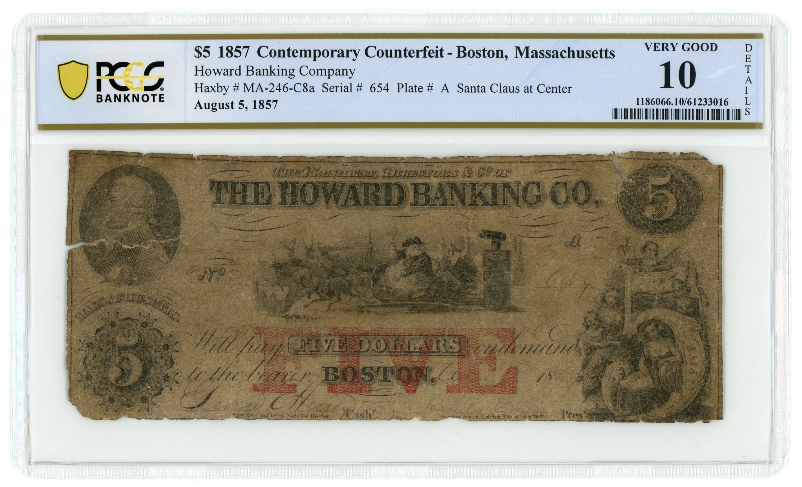 Haxby MA246-C8a. Contemporary counterfeit. Santa Claus vignette at center. Damaged notated on the back of the holder.
