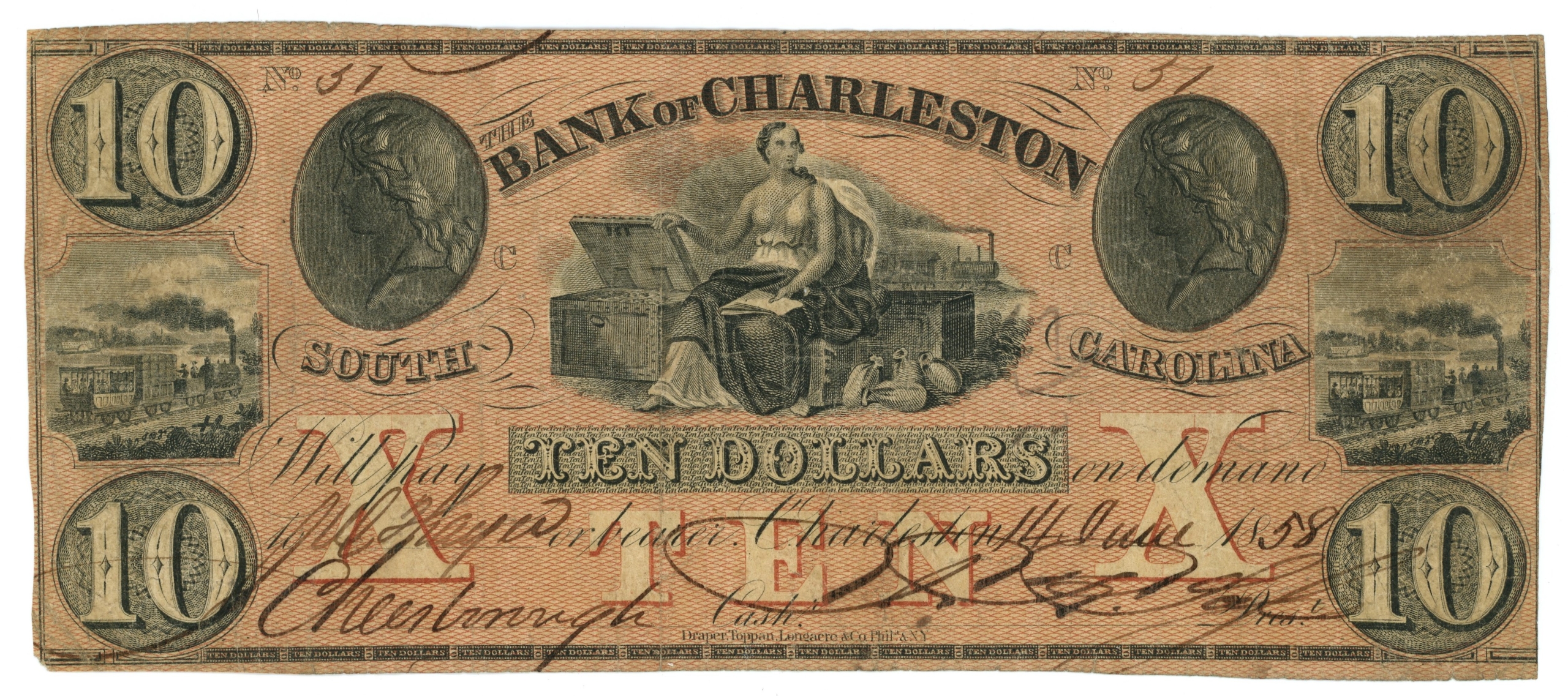 Sheheen 67 (Rarity 4). T-14 CSA vignette at center. Note has pinholes and minor edge tears. Bottom left corner tip missing.