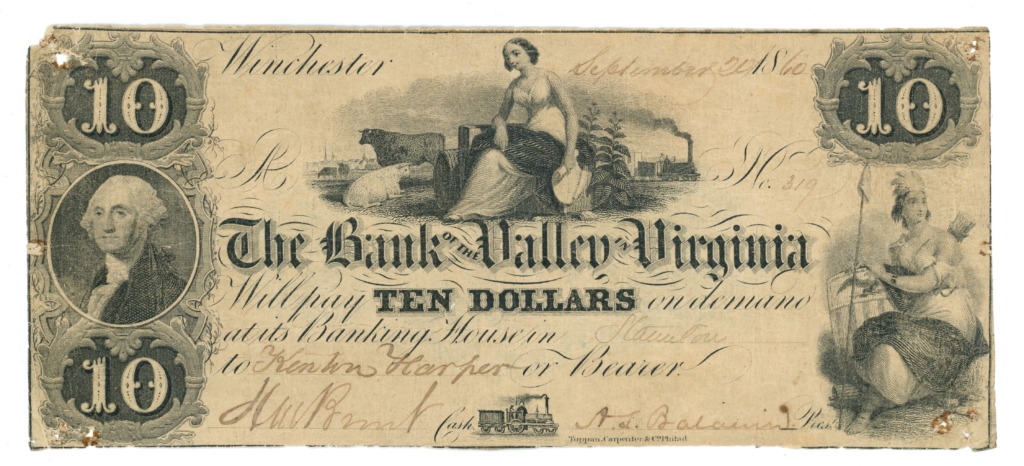Missing top left corner. Note has holes and pinholes. VA255-G222a. Payable at Staunton branch.
