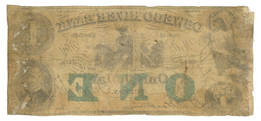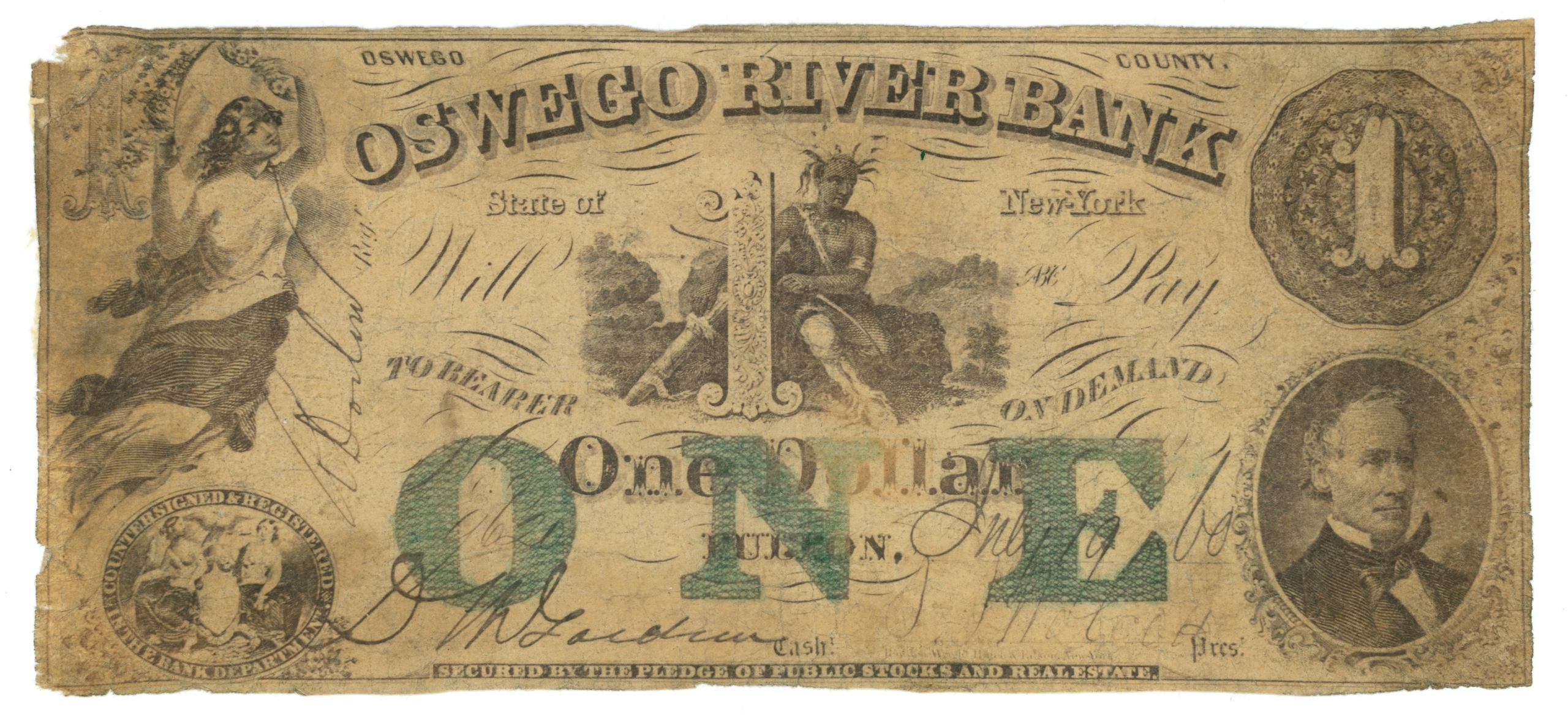 1860 Oswego River Bank Fulton NY $1 Obsolete Note CTFT SENC (66792)