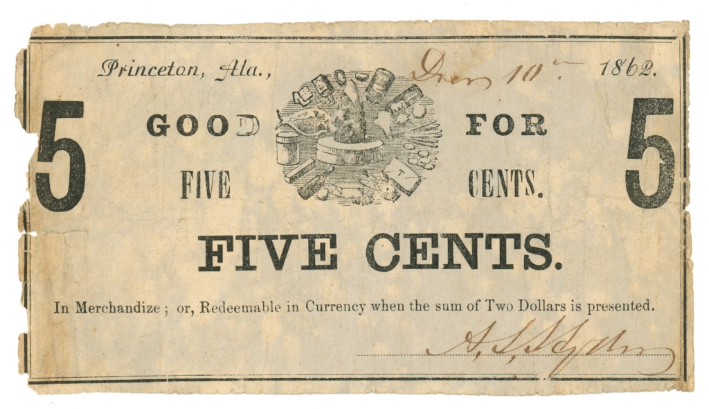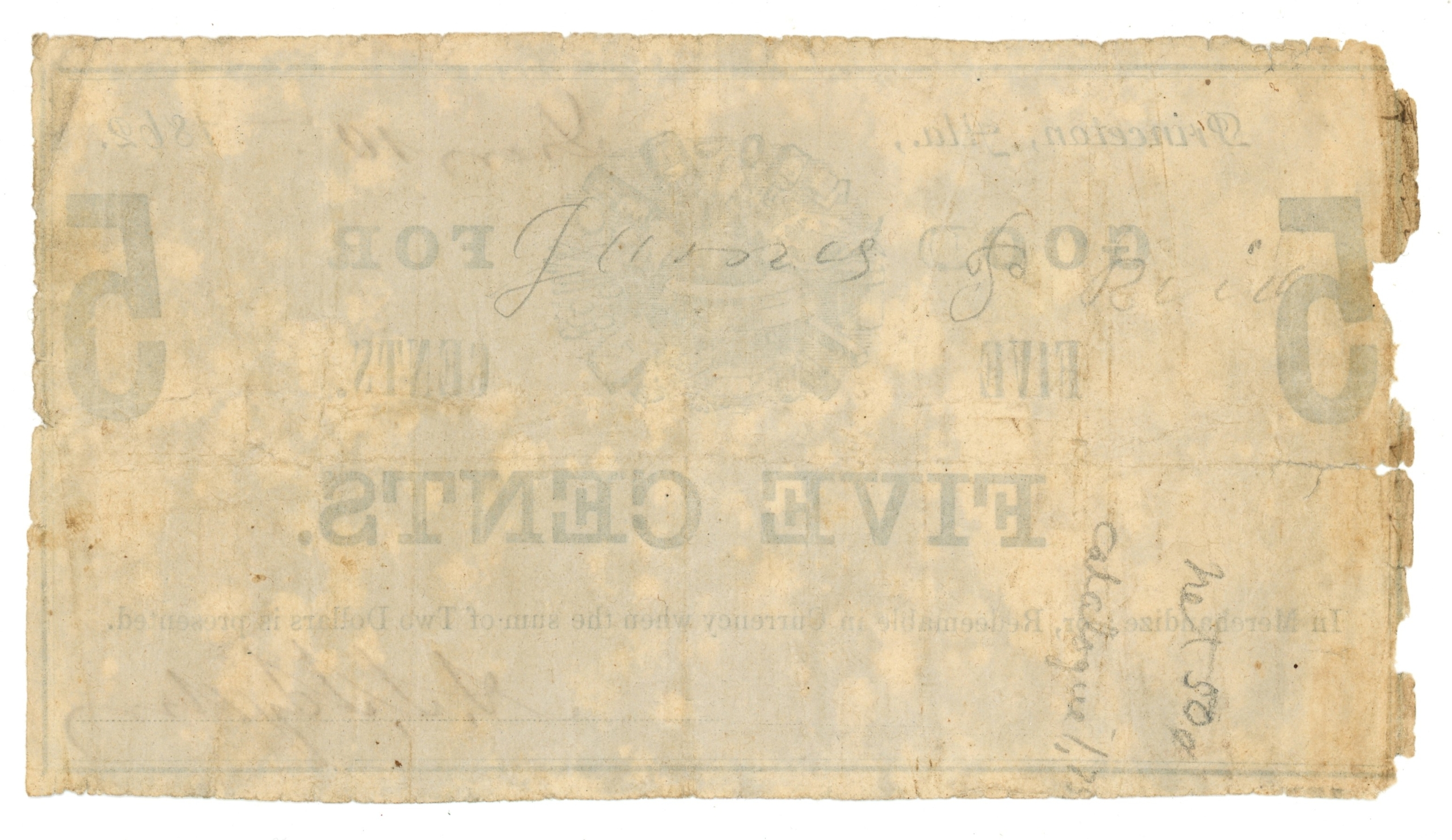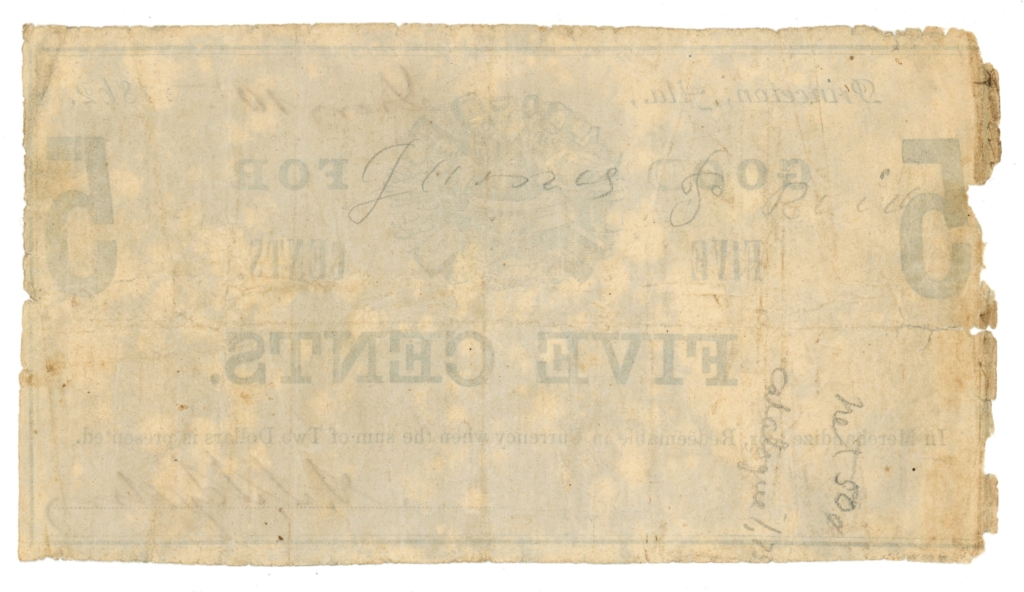 Rosene 281-1, 8 (Rarity 6). Listed as AS Sydney in Rosene. Gunther-Derby AO-403-$.05b (Rarity 6). Note has annotations on the back, pinholes and edge damage.