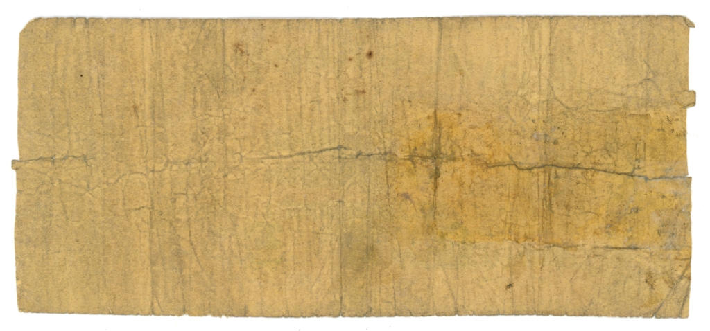 Note has holes, tears and internal slits. Repaired/adhesive residue on the note.