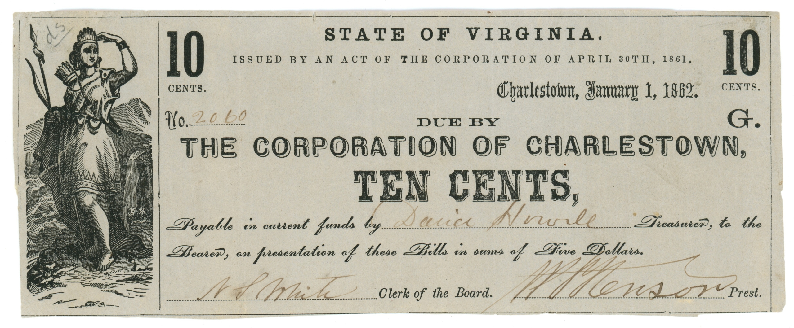 Note has a tear repair. Current day West Virginia.