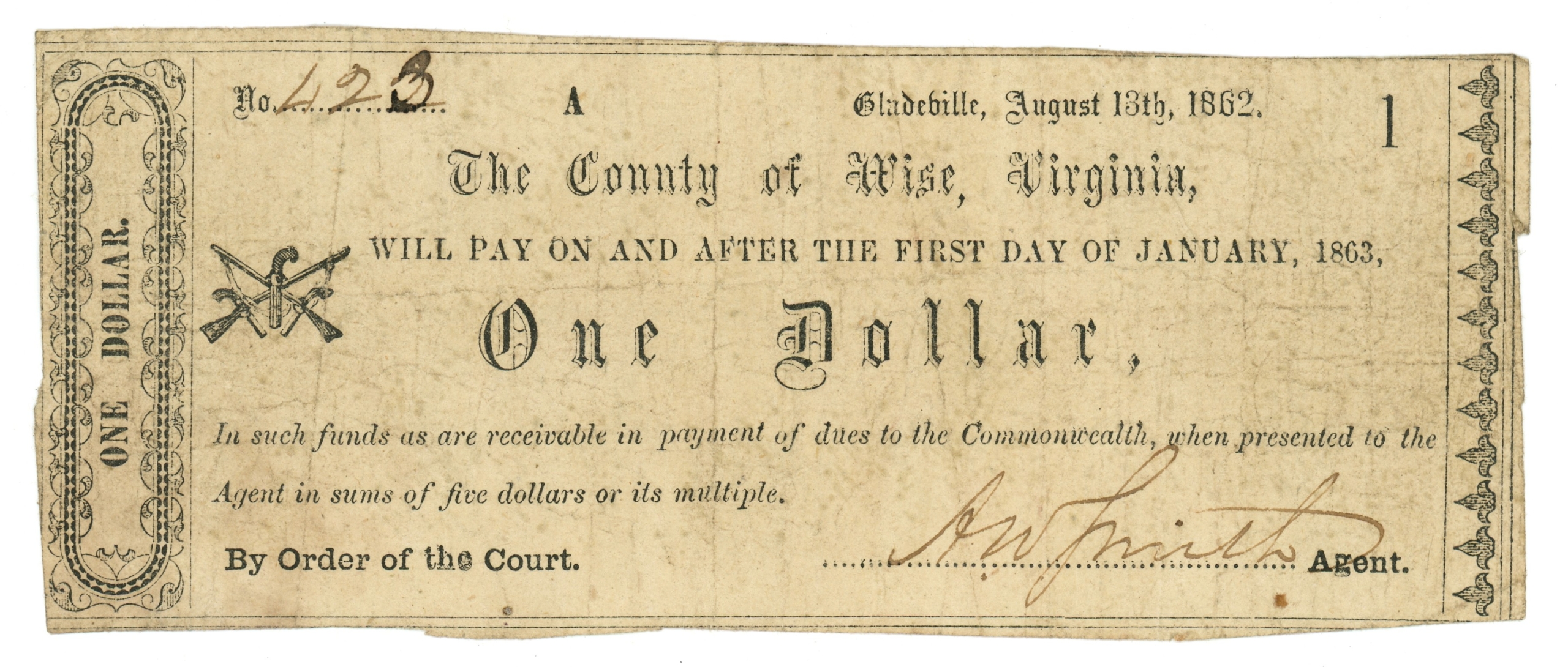 Jones-Littlefield CW10-21. Note has pinholes/holes. Adhesive residue on the back of the note.