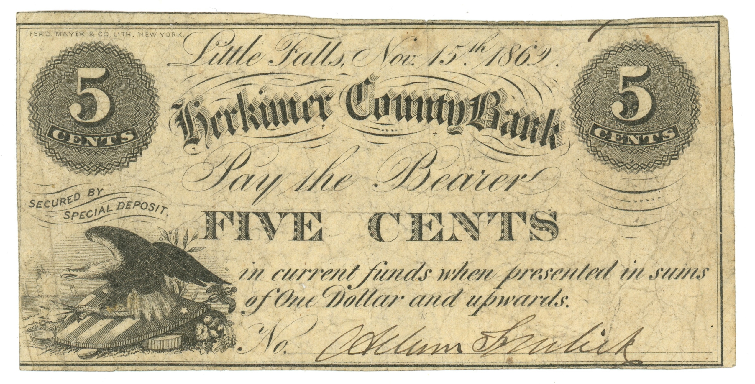 Harris 48. Rarity 6. Note has pinholes and a hole.
