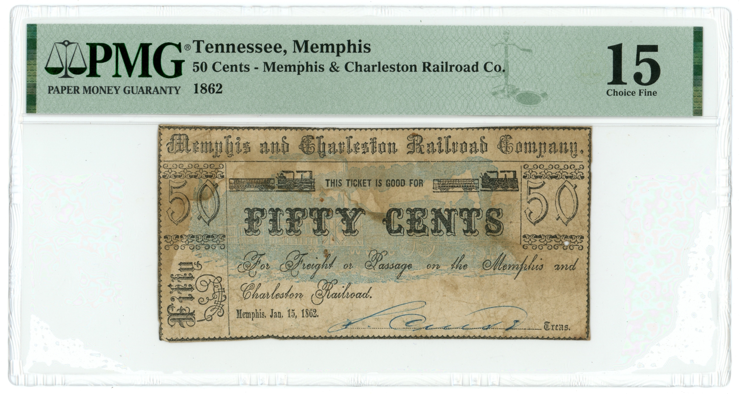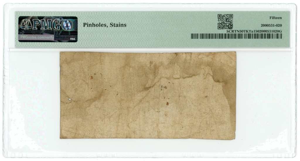 Garland 1397; Rarity 13. Sheheen 656; Rarity 5. Schafluetzel & Carson M-R.M&C-50c-2 (Rarity 12). Note has pinholes and stains as attributed on the holder.
