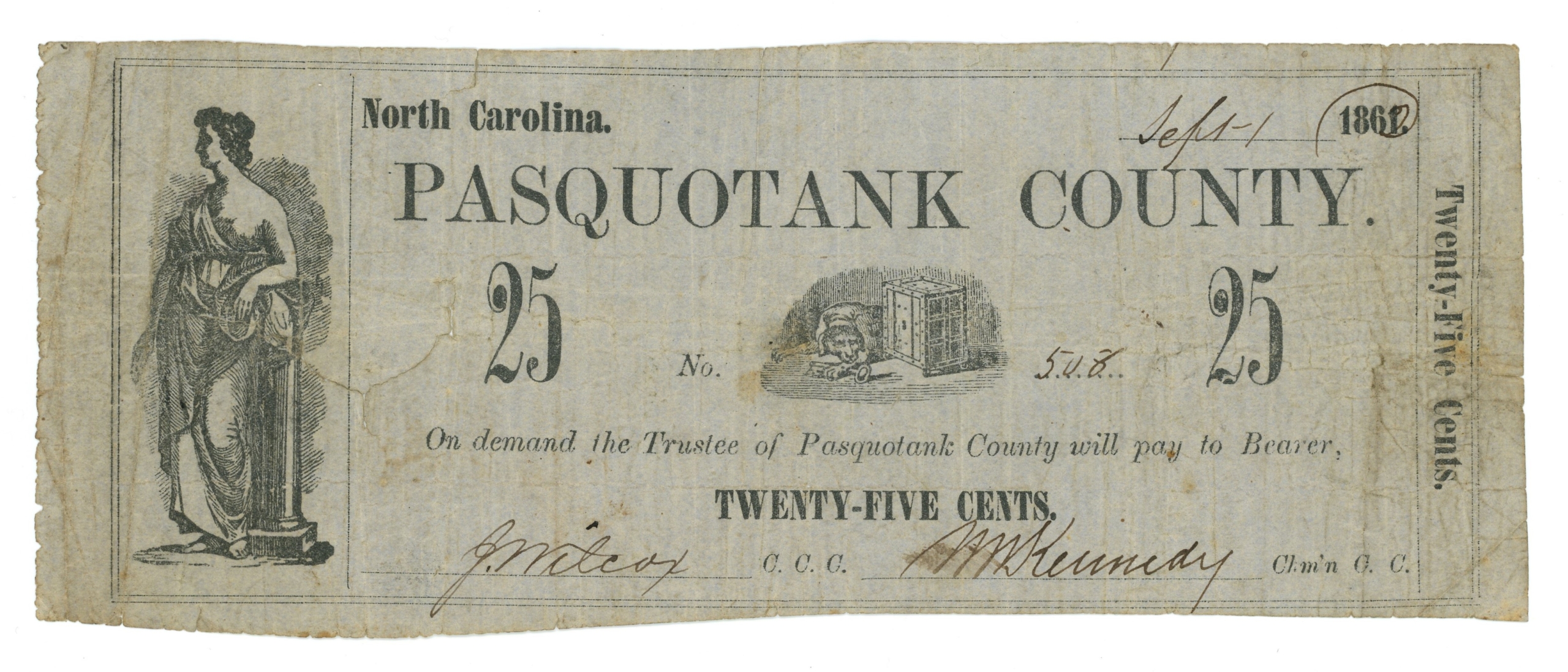 Date changed from 1861 to 1862. Large internal tear. Note has small edge tears and pinholes.