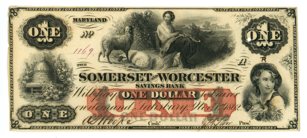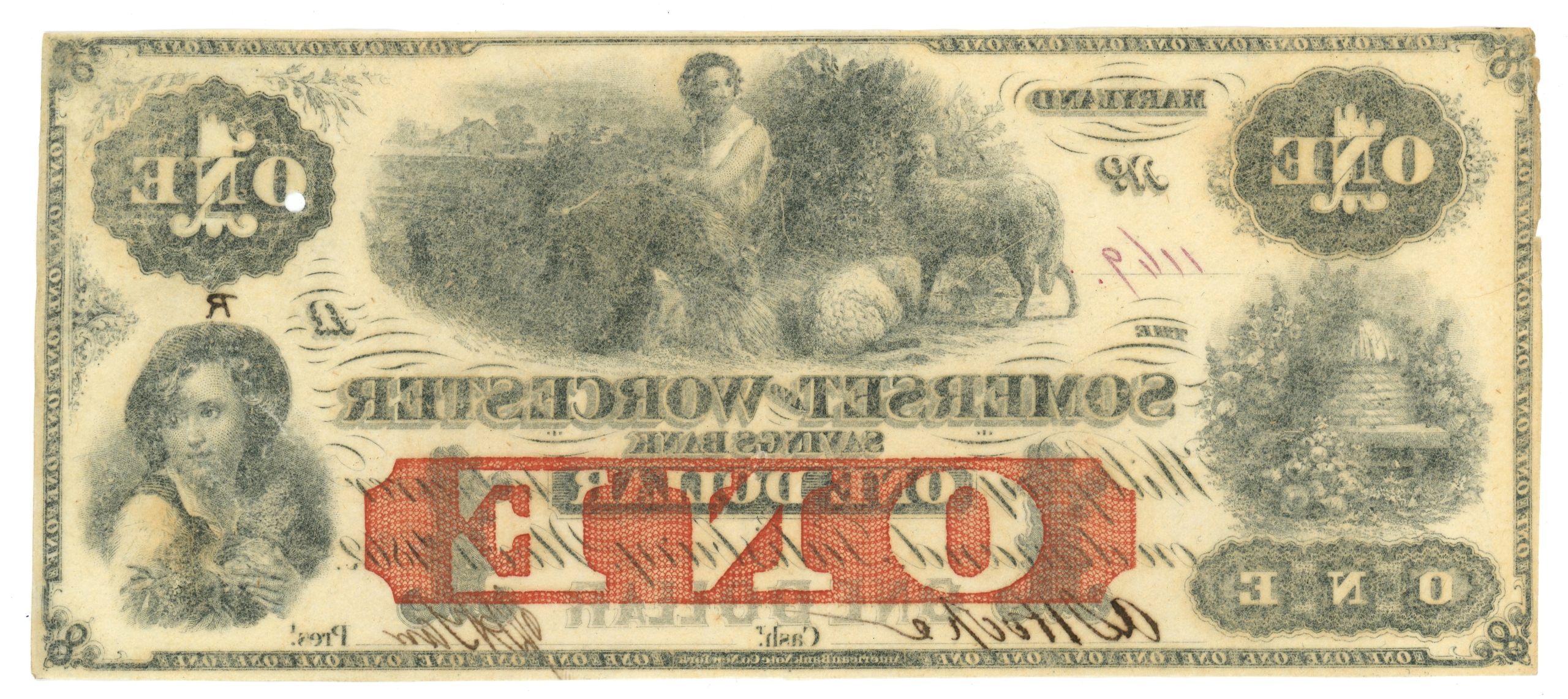 Punch out cancel. Ink above the right vignette/portrait.