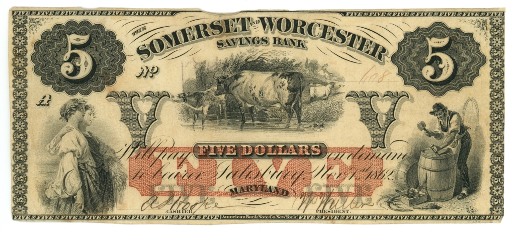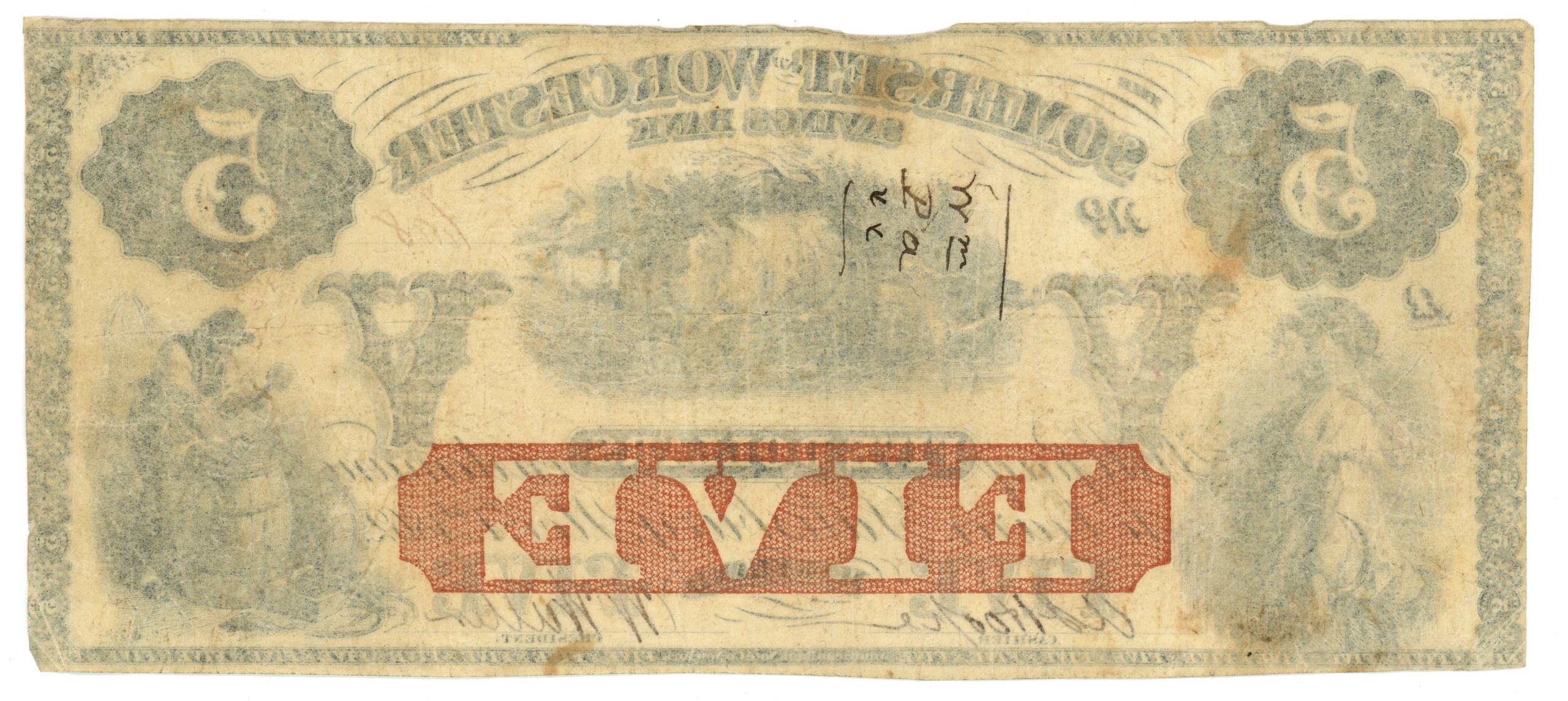 Note has pinholes. Light staining on the back.