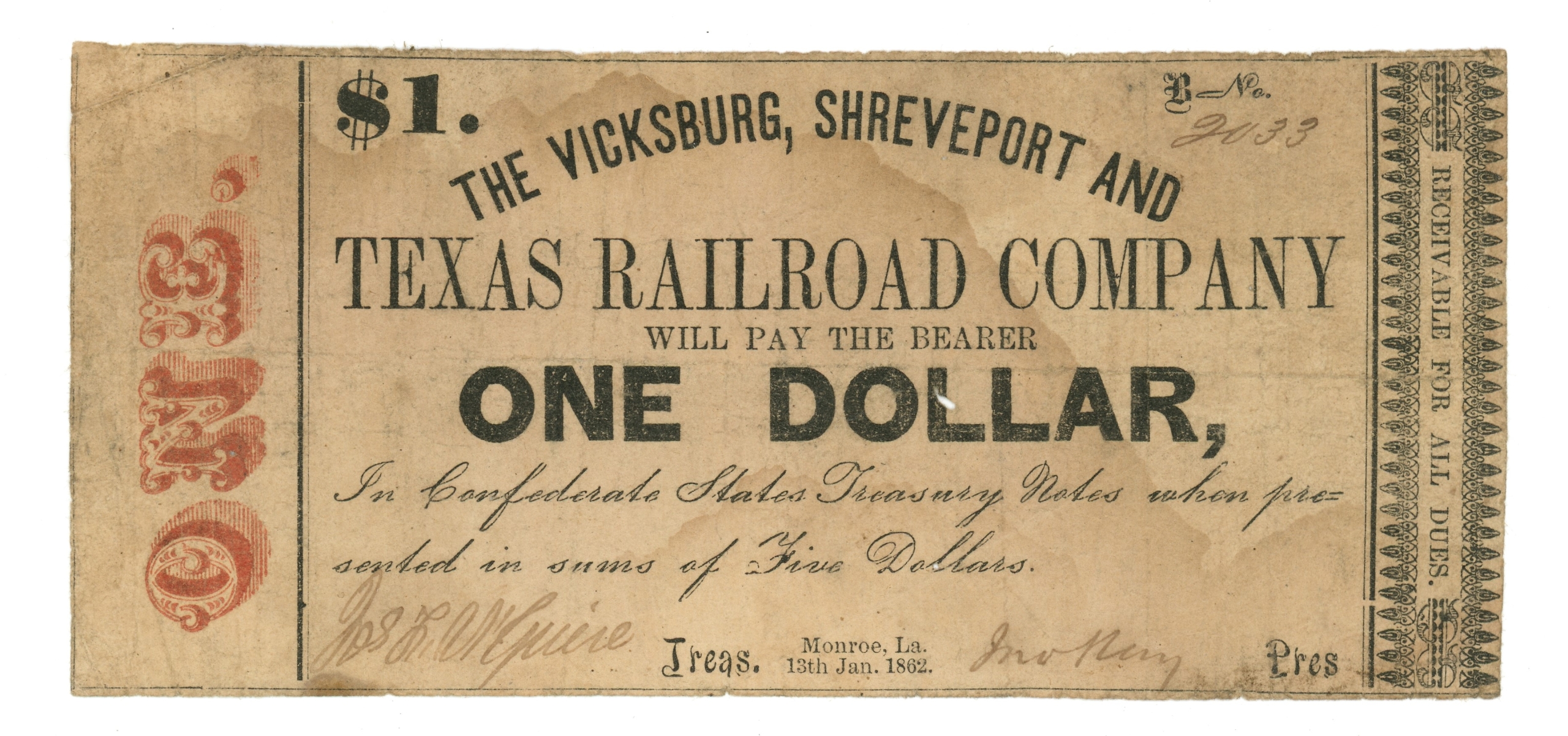 Note has stains and holes/pinholes.