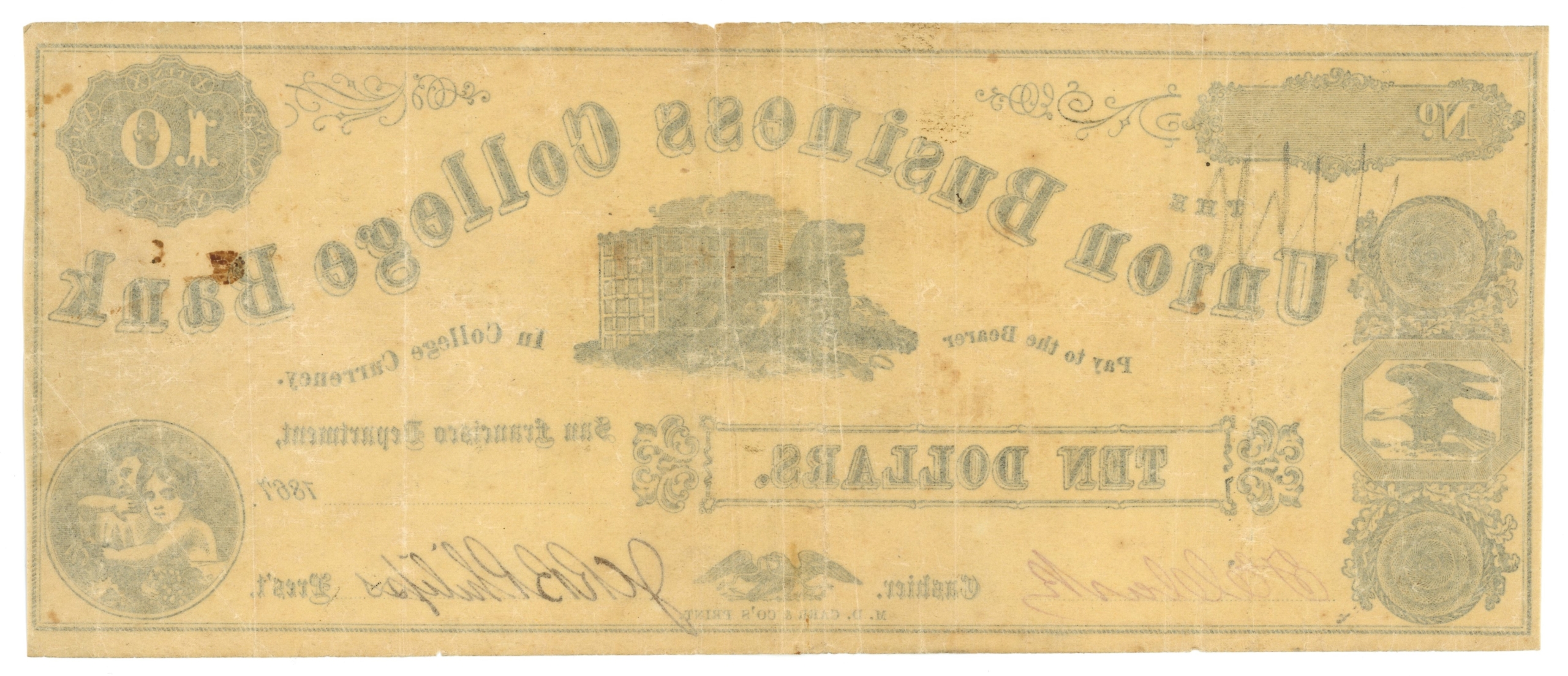 CA360-10. Possibly issued? Small area of foreign substance on back of the note. Small edge tears.