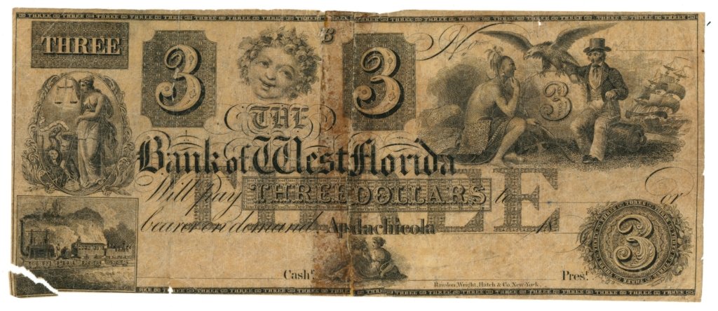 18XX Bank of West Florida Apalachicola FL $3 Obsolete Note B-6 R6 (65881)