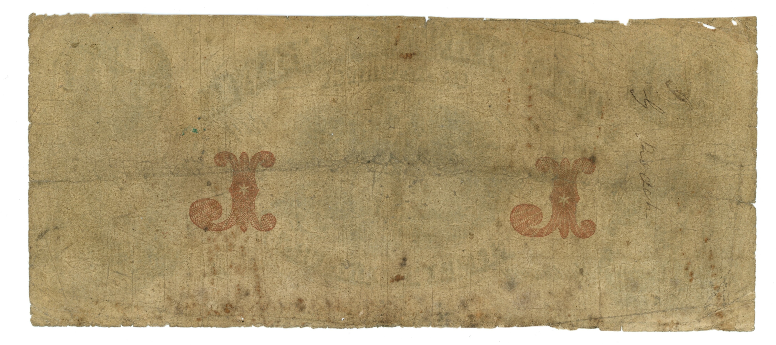 Haxby AL65-G20a. Note has rust stains and holes. Small pieces missing in the margins.