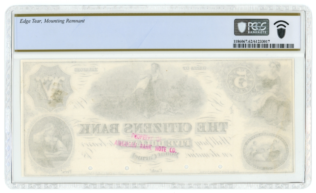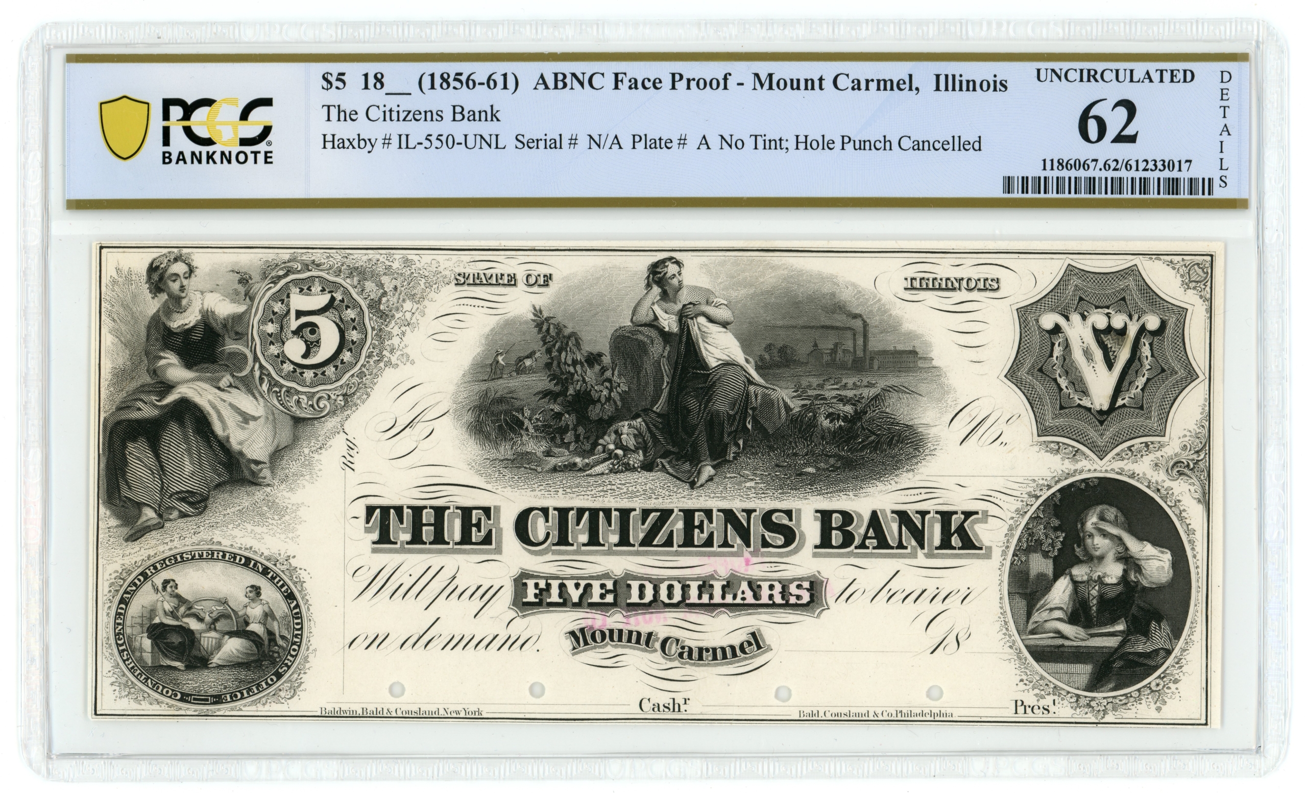 Haxby IL550-UNL. Edge tear and mounting remnants notated on the back of the holder.