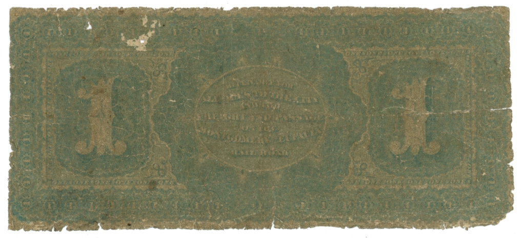 Rosene 232-5. Reconstruction Era. Note has holes, pinholes and edge tears. Large split (~2 inches) in the left margin going towards the center of the note. Very low grade example.