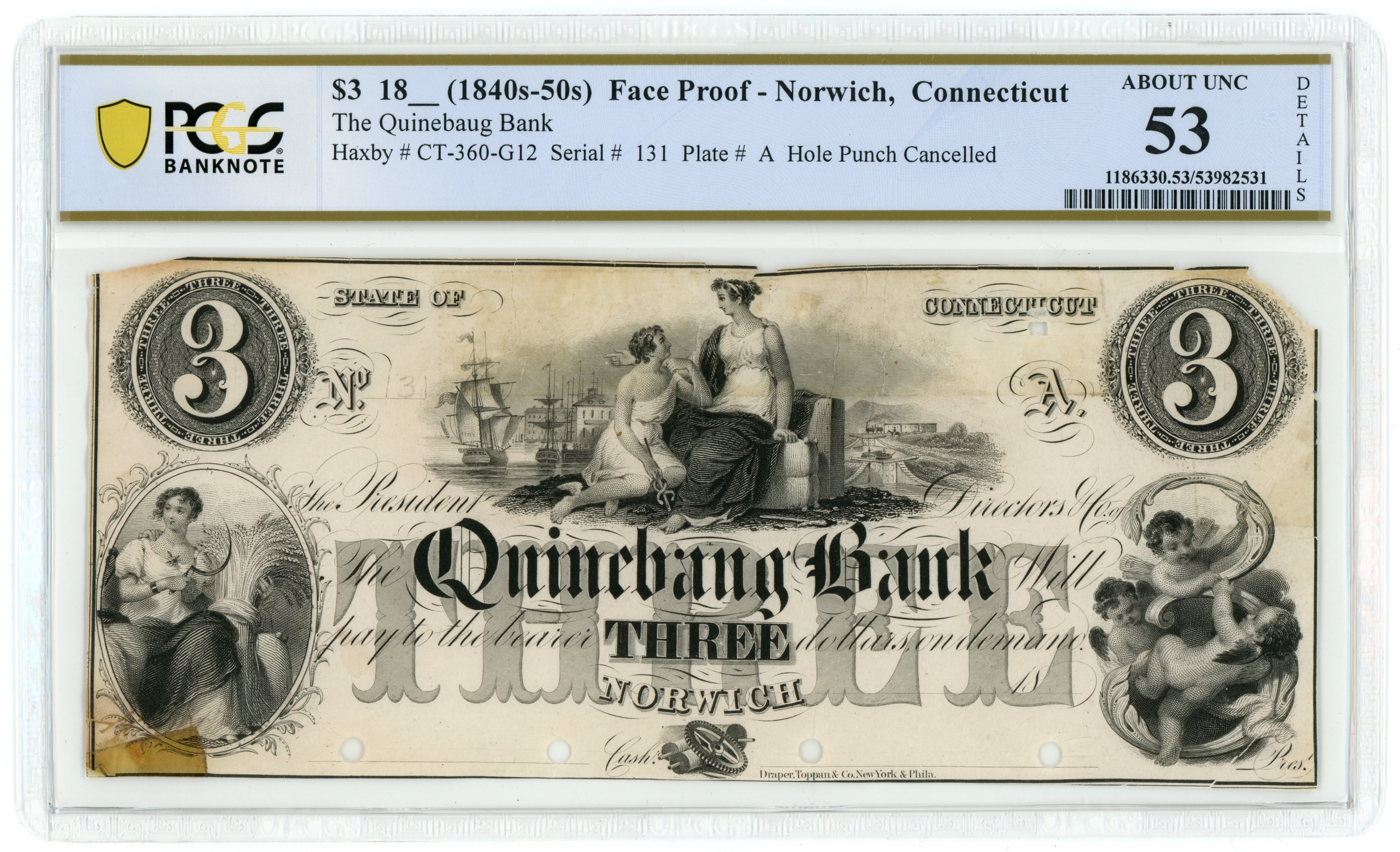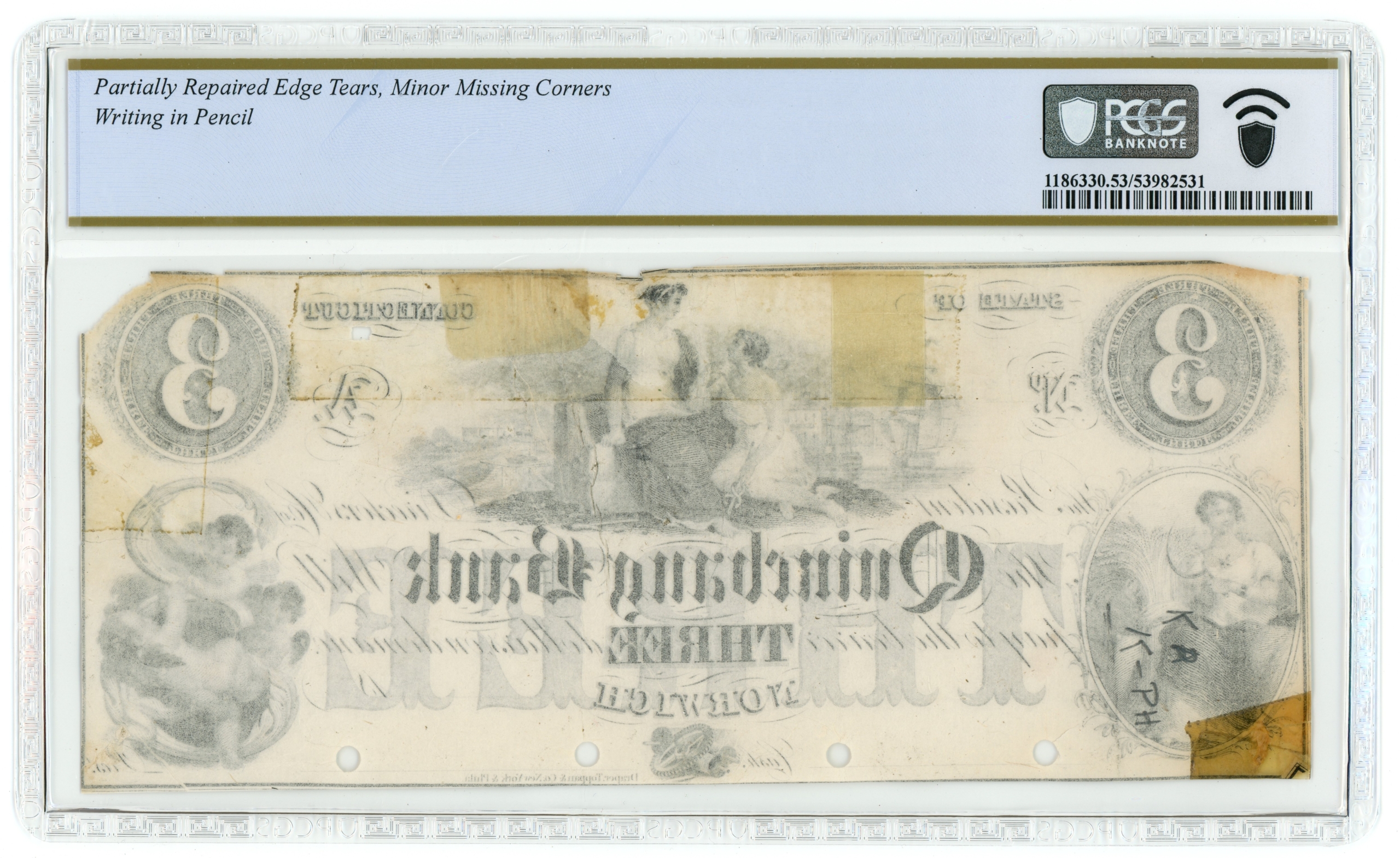 Haxby CT360-G12. Very rare note. Partially repaired edge tears, minor missing corners and writing in pencil notated on the back of the holder. Punch canceled.