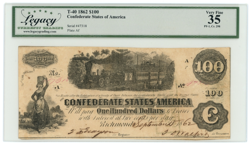 T-40 PF-1 CR-298 State II. Rarity 11. In plate letter “Af” the f is missing the crossbar. Note has a pinhole.