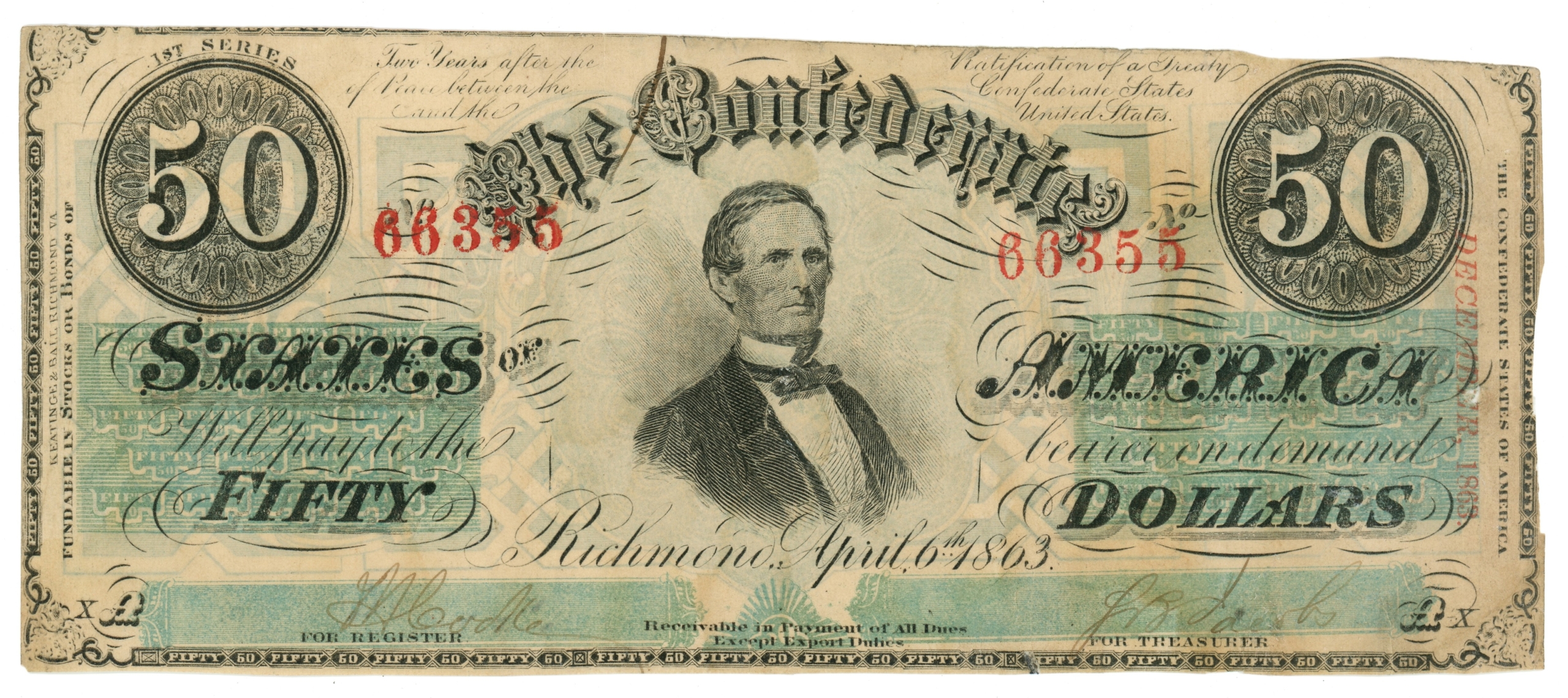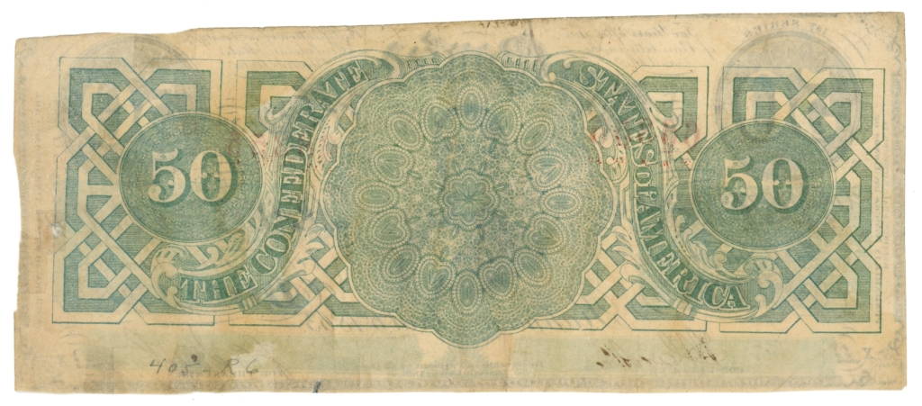 Note has pinholes, hole and tears. Tape repairs. Small annotation on the back of the note.