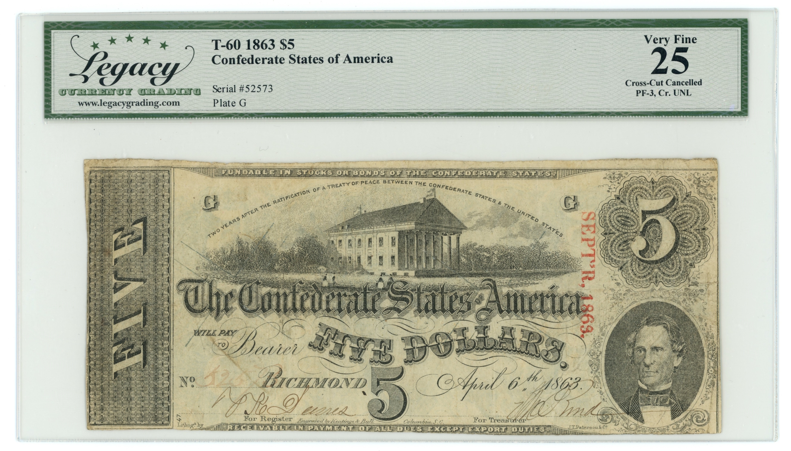 No Series. Printed on plain paper. Litho’d by J.T. Paterson & Co. on bottom margin along with Engraved by Keatinge & Ball, Columbia, SC.